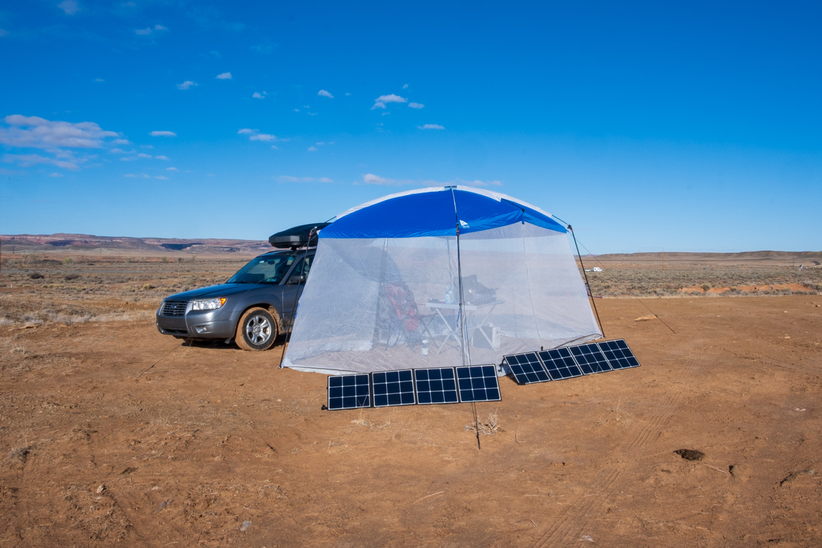 Wednesday was finally the day to set up my portable office – battery bank, solar panels, screen house, a folding table and chair. Of course, I had tested this all out previously, but this was the first time it was real, with no home Wi-Fi or electricity to back me up. Everything worked without a hitch. I was pleased.