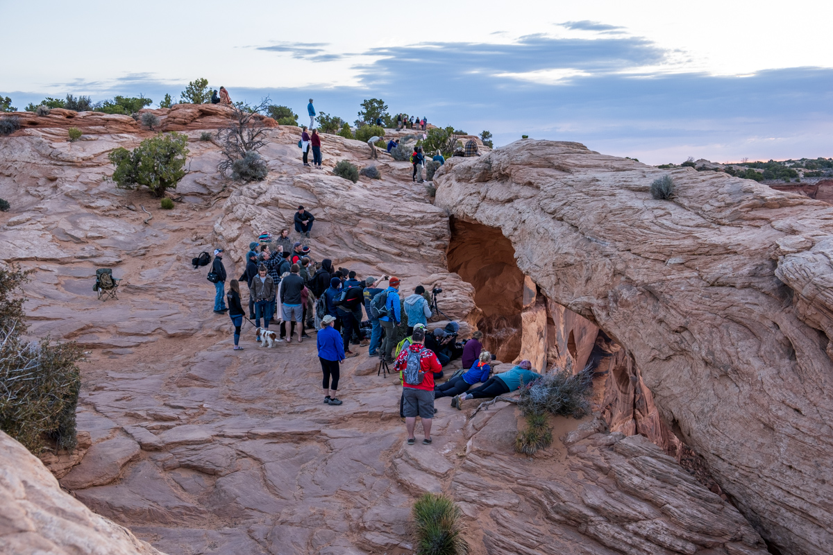 When I made it back to my car, I circled around to a BLM site near the entrance to the Island in the Sky District and spent the night there. I woke early (you guessed it, before sunrise) and headed to Mesa Arch. The sun rises right through the arch, and I thought it would be nice to see before jetting off to Bryce Canyon area. And well, it might have been, if I could have seen through the arch…
