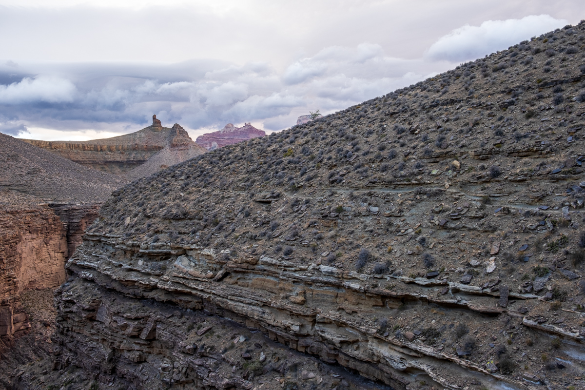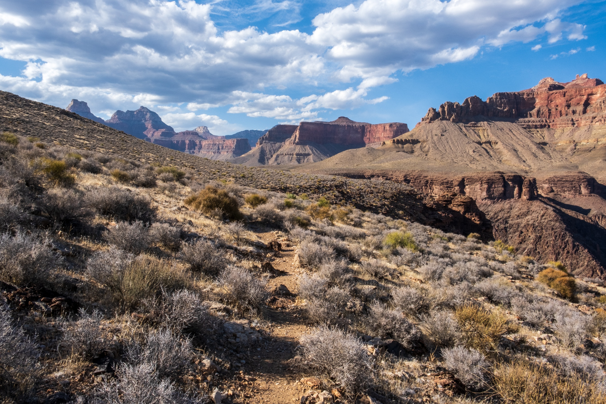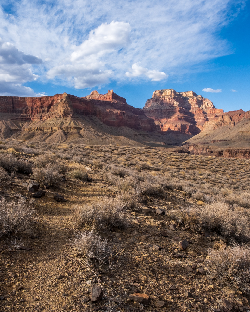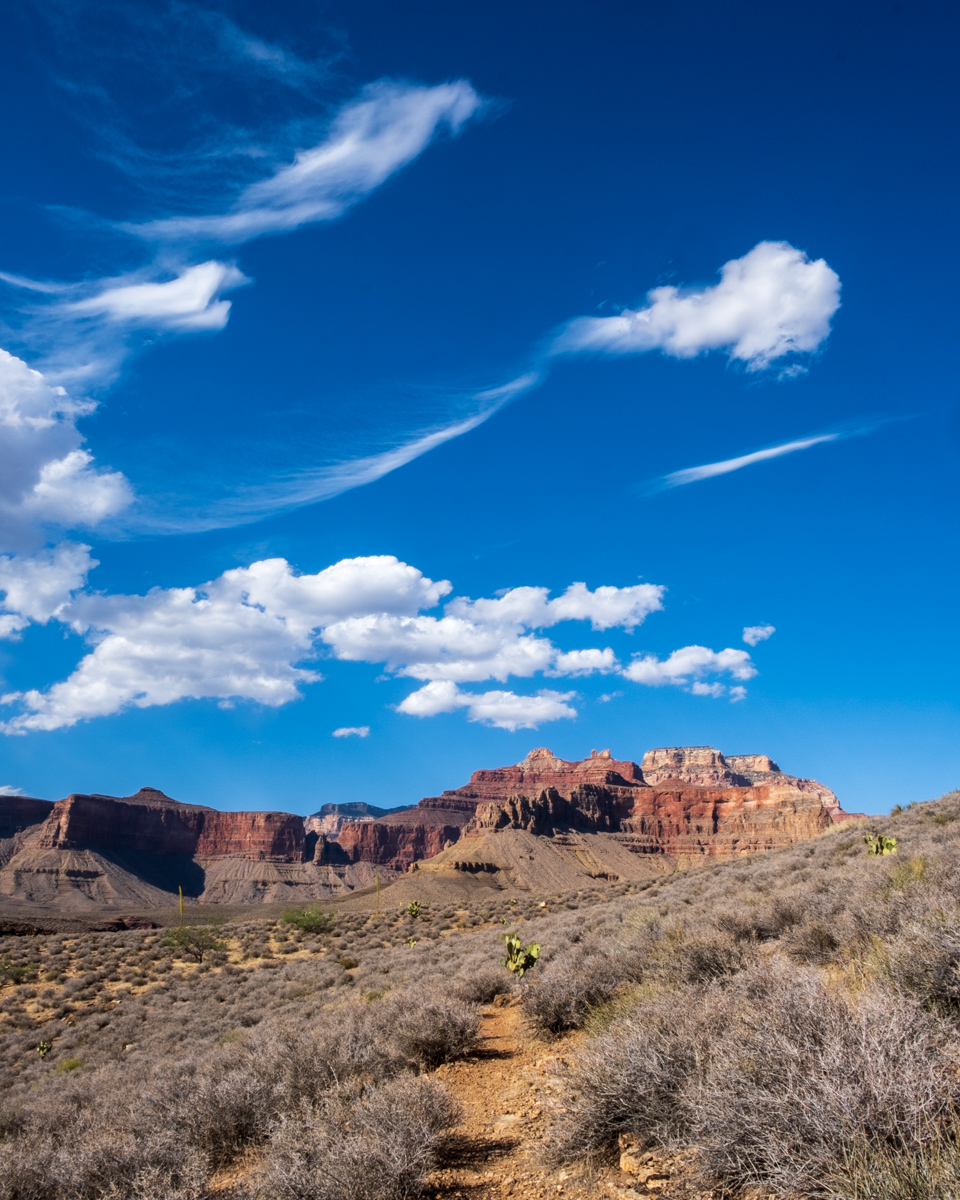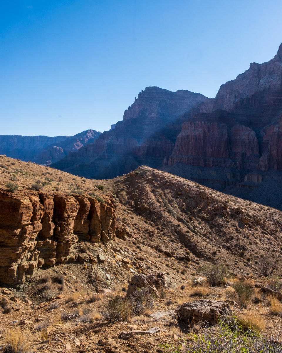 But I soon began to understand the tendencies of this trail as it wove around drainages, sticking to the edge of Tonto Platform, 1,000 feet above the Colorado River.