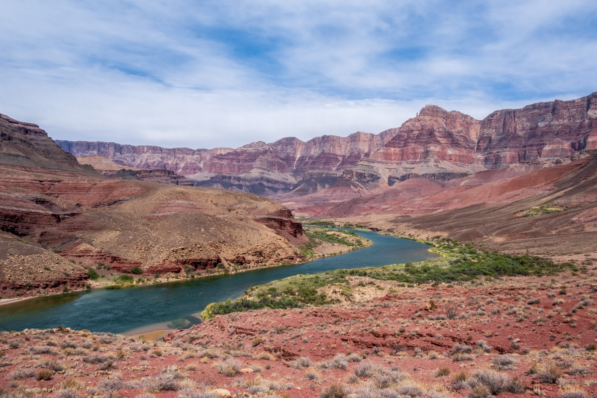 Thankfully, I had sure footing all day and followed the trail until it eventually meandered down from the Tonto Platform to the bottom of the canyon by the Colorado River, where I cowboy camped on the beach. And I thoroughly enjoyed the views the entire way.